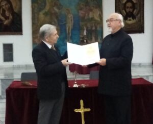 Церемонијата на доделување се одржа во салата на Македонската православна црква, во присуство на неговото семејство и неколку медиумски претставници, а со почитување на сите протоколи.