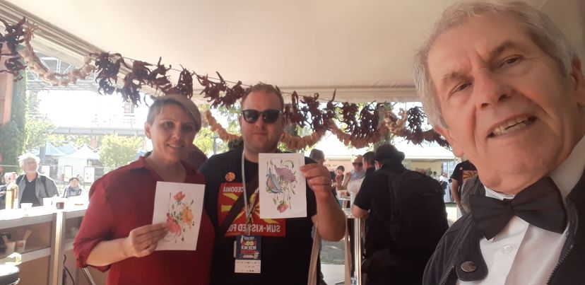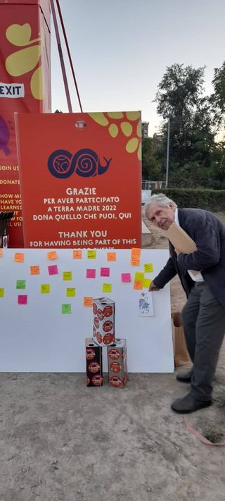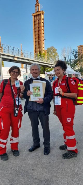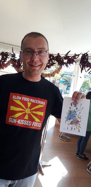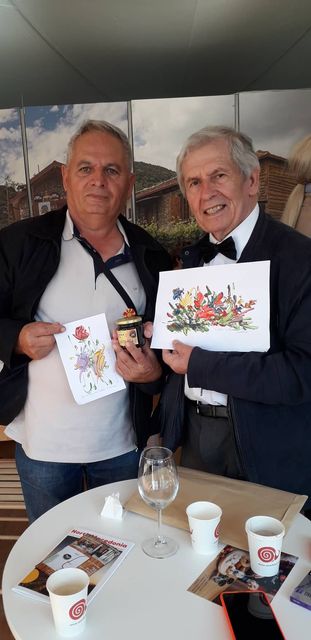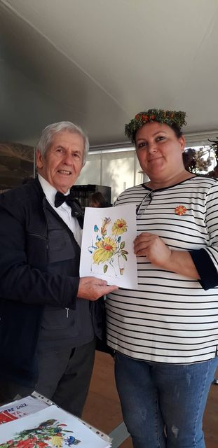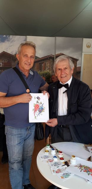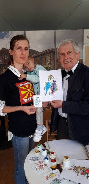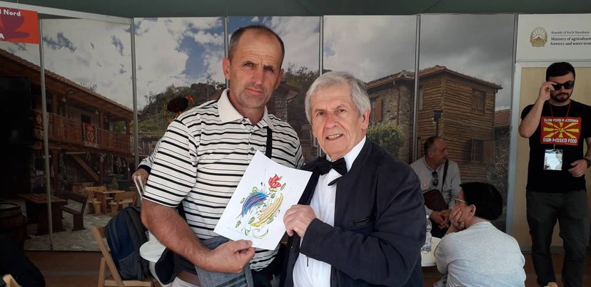 -На отворањето на Светскиот саем на храна Тера Мадре, во Торино, заедно со мојата ќерка Александра ги посетивме сите штандови, а го посетивме и македонскиот штанд и таму изложивме мироносни цвеќиња и две нејзини слики- една масло на хамер со едно јаболко и сад за вода и друга слика графика со мотив “око”. Таа е многу талентирана но не сака да излегува во јавност. Ова беше специјален момент. Имав и ликовна цветна работилница каде ѝм подарував на македонските учесници на Саемот- сточари, пчелари, учесници од прехранбена индустрија како и на дегустатори на македонско бело сирење и други производи, мироцветна минијатура и една поголема слка А/4 формат за Црвениот крст на Торино. Цвеќиња подарив и на повеќе учесници при обиколката и разгледувањето на Саемот. На Саемот имавме срдечна средба со две активистки на Италијанскиот Црвен крст за Торино при што ѝм подарив по една слика. Јас порано бев Претсетадел на Црвениот крст на Македонија, а во една прилика заедно со другите европски претседатели имавме прием кај кралицата Елизабета Втора во Британија.
