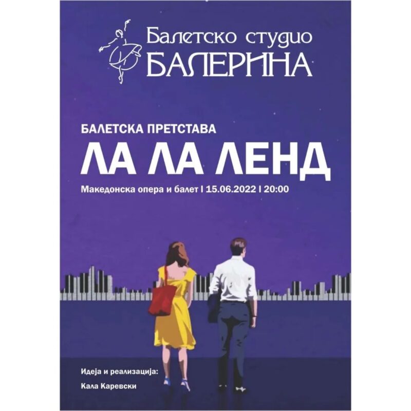 “Ла Ла Ленд”, за светот значи познат филм, за македонската балетска публика, наслов на мултимедијалена претстава, нешто модерно – составена од балетски точки, музички точки и драмски реплики, создадена од КАЛА КАРЕВСКИ, а изведена од млади и надежни уметници.