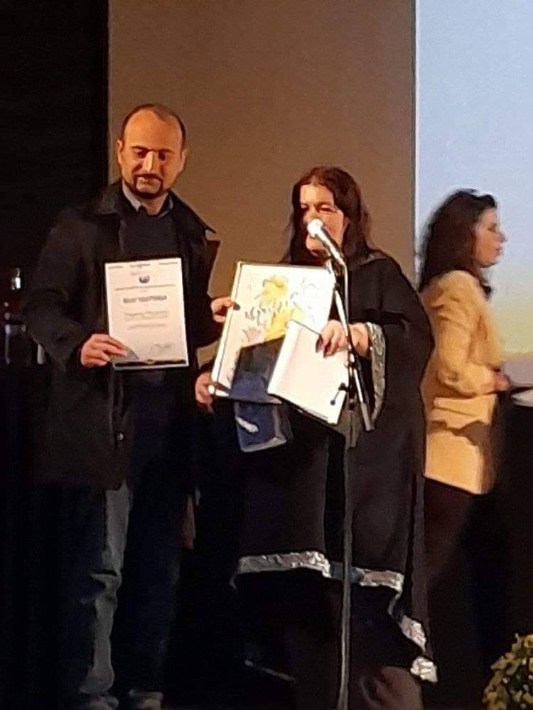 -Специјалното признание за особен придонес во воспитно – образовната и хуманитарната дејност беше доделено на професорот Раде Илиевски, професор по физичко и здраствено образование. Низ својата професионална кариера истиот има освоено бројни награди како “Просветен работник на годината на Град Скопје”, “Просветен работник на годината на Македонија”, “Просветен работник на бившите југословенски простори”, “13 Ноемвриска награда на Град Скопје”, 87 пати е дарител на крв и како лиценциран спасител има спасено 27 човечки животи од кои на 14 деца. Како инструктор – тренер по пливање, повеќе од 20 години работи со деца без родители, децасо посебни потреби, деца со аутизам, целебрална парализа, даунов синдром, болни деца од мултиплекс склероза и деца на самохрани родители, целосно доброволно и ентузијастички. Кога му ја доделувавме оваа специјална награда сакавме да му приредиме изненадување во договор со неговиот обожуван пејач Јордан Митев кој со задоволство ја прифати нашата покана. Инаку и Јордан Митев е од нашата фела, тој е дипломиран професор на Факултетот за музичка уметност во Скопје, на отсекот Музичка теорија и педагогија со народни инструменти. Оттука е тоа што кажав претходно, дека овде нема просечни.