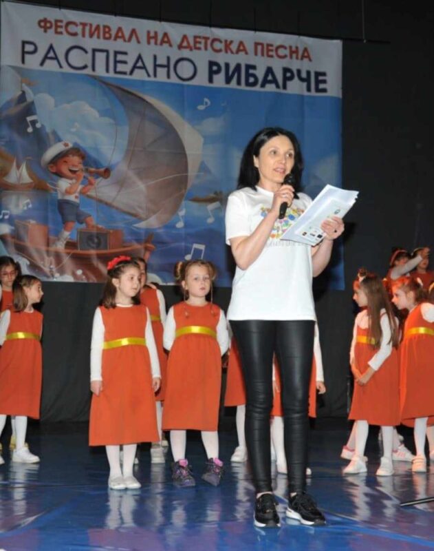 -Фестивалот на детска песна „Распеано рибарче„ е уште една нишка која длабоко ме врзува со најмладите, со децата и нивната љубов кон музиката и песната. Последниве седум години ја имам честа да бидам водител на овој фестивал, а тоа е она што секогаш ми ги полни батериите и ми дава сила и покрај огромниот број обврски од друга природа, да останам насмеана, ведра и полна со многу љубов. Оваа година го одбележавме 25 роденден на “Распеано рибарче”, беа исполнети 23 песнички создадени од повеќе автори, а на сцената заедно со детскиот хор излегоа околу сто деца, што навистина радува и е на задоволство не само на организаторите, туку и на сите учесници. Се надевам оваа традиција ќе продолжи, а ние ќе бидеме сведоци на уште многу јубилеи кои заедно ќе ги одбележуваме.