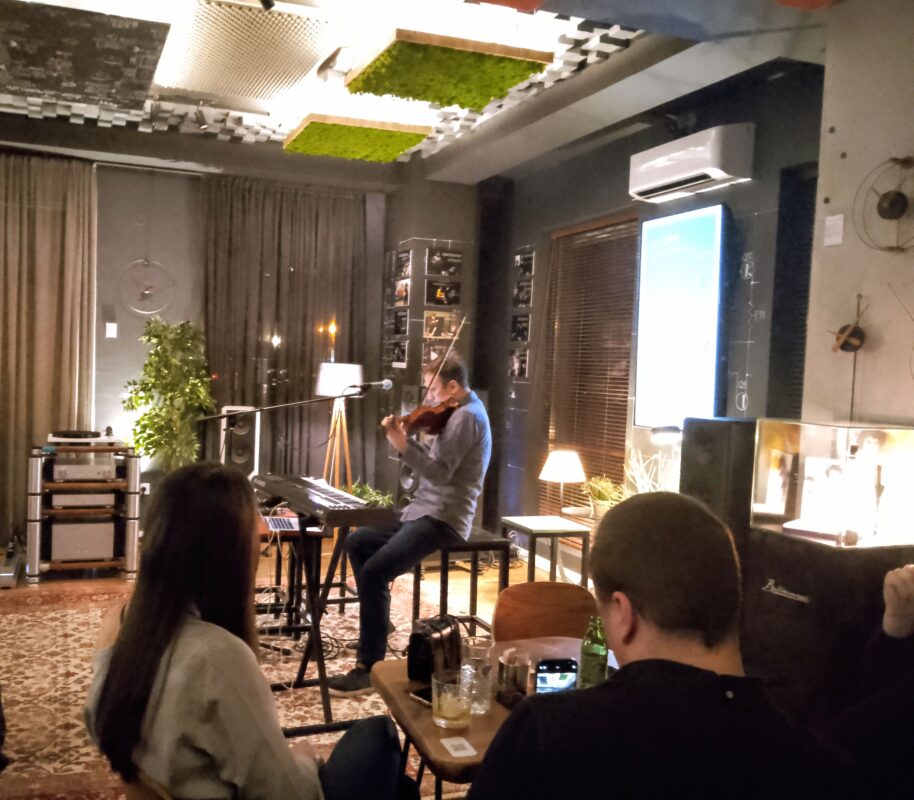 И, како што доликува на една камерна топла и пријателска атмосфера, каква што создава овој сѐ попопуларен скопски клуб, тој беше исполнет со пријатната музика што на сајзер, и на виолина ја изведе Кондовски, но подобро би било да речам ги отшепоти своите ионака шепотливи музички дела. Вбризгувајќи нѝ го својот творечки импулс со осет, од оној највешт осет, ронлив под прсти- полека и леснопримачко.