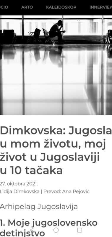 Јавен одговор кон Лидија Димковска, авторка на текст „Југославија во мојот живот, мојот живот во Југославија во 10 точки”, објавен на 27. 10. 2021. година на порталот: Nomad.ba