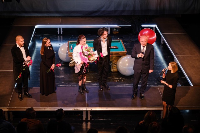 Сценографијата ја изработи Валентин Светозарев, драматург е Оливера Павловиќ, а костимите се дело на Андреј Ѓоргиевски. Во претставата играат: Никола Стефанов, Иван Јерчиќ, Валентина Грамосли, Викторија Степановска Јанкуловска. Суфлер: Мирјана Христовска, инспициент: Димитар Михајловски. Дизајнер на видео: Сашо Илковски, светло- мајстор Горан Петровски, тон- мајстор Александар Димовски, автори на плакатот Марјан Неќаќ и Сашо Илковски, консултант за билијард: Игор Радичоски.