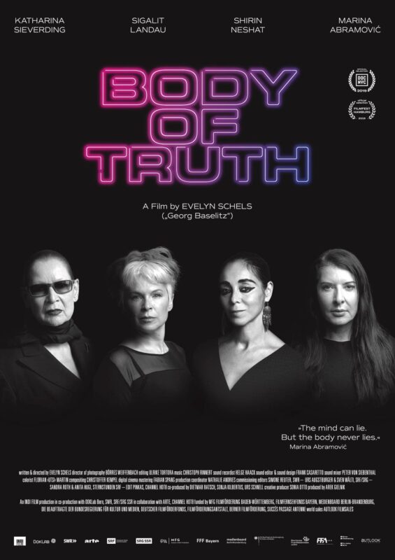 ТЕЛО НА ВИСТИНАТА ве води на емотивно патување низ биографиите на четири уметници: Марина Абрамовиќ (Marina Abramović), Сигалит Ландау (Sigalit Landau), Катерина Зивердинг (Katharina Sieverding) и Ширин Нешат (Shirin Neshat), кои трансформирајќи ги личните животни искуства на војни, насилство и опресија во земјите од коишто доаѓаат, создаваат провокативни и радикални уметнички дела, коишто покренуваат низа прашања од политичко и општествено значење. Во нивната уметност, главен и најинтимен медиум со којшто се изразуваат се токму нивните тела.