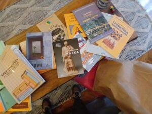 На средбата зборуваше и почитуваниот Горан Ангелов, директор на Агенцијата за иселеници, кој ги потсети присутните на големата донација што нејзиното семејство ја даде во октомври минатата година, 3.000 книги за училиштата, библиотеките и црковните општини на македонски јазик низ светот.