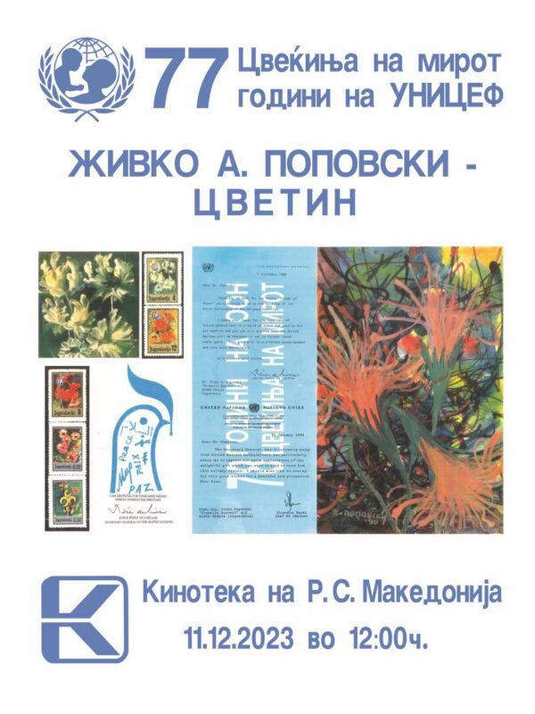 Нашиот познат нобеловски кандидат, уметник и хуманитарец Живко Поповски Цветин на 11 декември 2023 година ќе одржи голема изложба на своите цветни цртежи во Кинотека на Македонија.