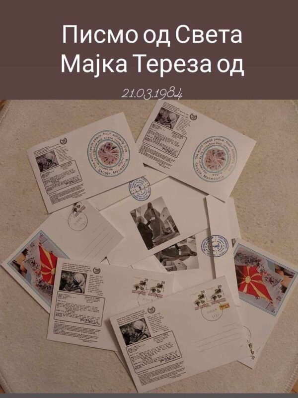 Во писмото, со кое го повела по нејзиниот пат, на ширење на мирољубива мисија, меѓудругото му ја запишала и оваа порака: “Сиромашните се секаде околу нас, осамените, несаканите! Биди лубезен и прави им добрини на оние блиску до тебе, и чувај ја радоста на сакањето на Исуса во своето срце, бидејќи Тој е верен”.