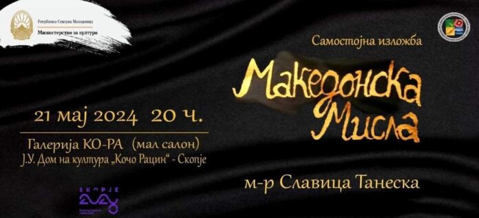 Во рамки на проектот „Цртај на македонски“ на Министерството за култура м-р Славица Танеска ја организира нејзината деветта самостојна изложба насоловена „МАКЕДОНСКА МИСЛА“.Самиот проект го афирмира македонскиот јазик и кириличното писмо преку ликовната уметност и дизајнот. Вусшност станува збор за типографски дизајни во кој се вметнуваат и илустрации. Текстовите се македонски народни мудрости кои се аплицирани на парчиња облека, бидејќи како што ја носиме облеката на нас, така ги носиме и традицијата и македонските мисли во нас. Во своите проекти м-р Славица Танеска во континуитет е посветена на афирмацијата на традицијата, а овој проект е поразличен во тоа што навлегува во сферата на применетата уметност и дизајнот.