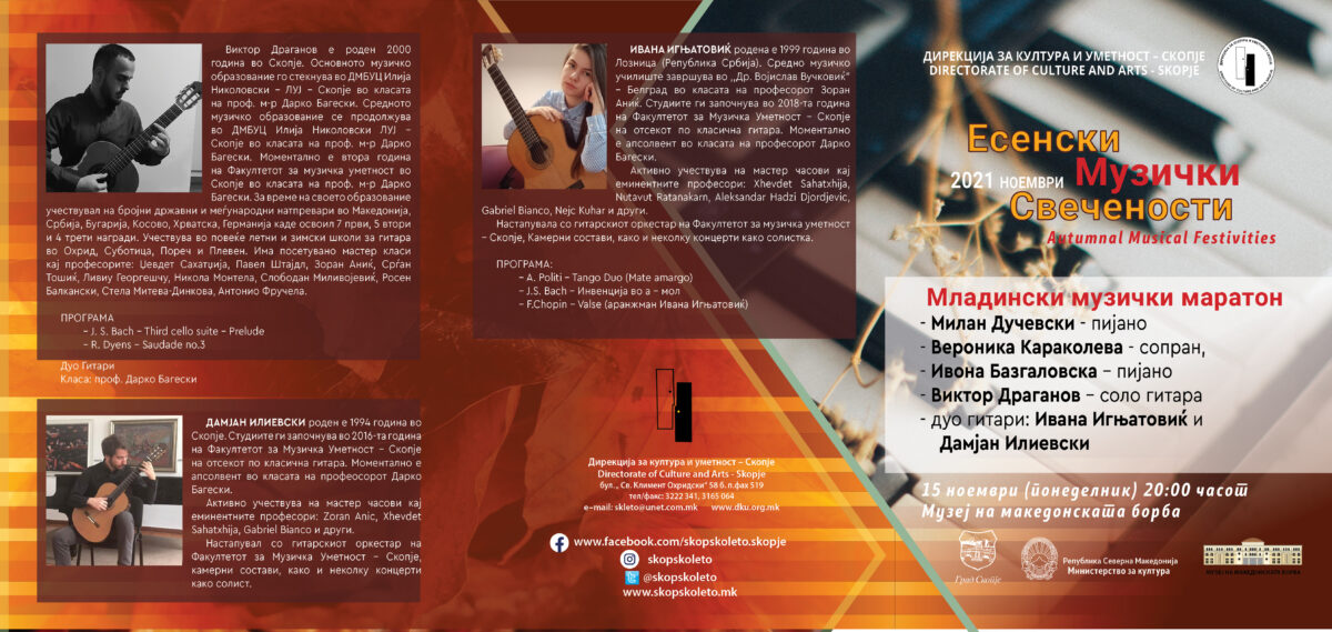 МЛАДИНСКИОТ МУЗИЧКИ МАРАТОН“ ќе се реализира во Музеј на македонската борба на 15.11.2021 година, со почеток во 20 часот.