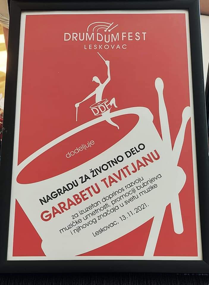 Пред десеттина години се создаде регионалниот фестивал “Друм Дум Фест” во Србија, и израсна во реномиран фестивал, а неодамна со награда за животно дело го награди големиот македонски музички уметник, тапанарот Гарабет Тавитјан, познатиот Гаро. Тие специјално допатуваа во Скопје да му ја врачат наградата на Гаро, за врвни постигнувања и поставување на темелите на ритамот и свирењето на тапани, во регионот и пошироко.