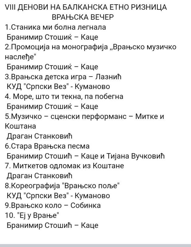 Беа изведени речиси сите најубави песни од уметници од Врање и КУД “Српски вез” од Куманово.