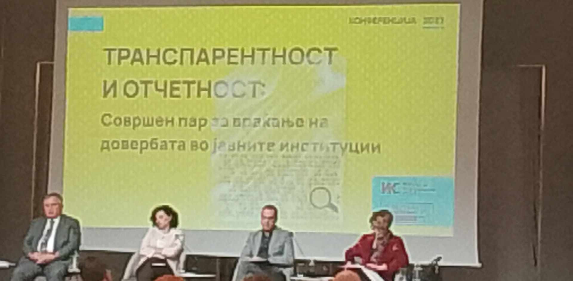 Само со поголема транспарентост на јавните институции може да се обезбеди отчетност на трошењето на парите на граѓаните што се одлеваат од државниот буџет. Институционалната транспаретност е подобрена изминатите години, но перцепцијата на граѓаните сепак е разочарувачка, а јавната доверба во институциите е ниска. Ова беше кажано на конференцијата.