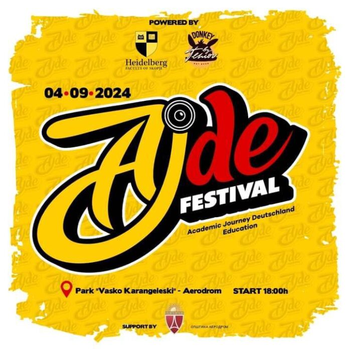 Во најава е првото издание на фестивалот “Ајде” , кој ќе се случи на 4-ти Септември во паркот Васко Карангелески во Општина Аеродром, со почеток од 18:00 часот.