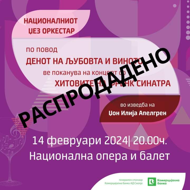 Концертот со Хитовите на Френк Синатра во изведба на Џон Илија Апелгрен и Националниот џез оркестар е распродаден во рекорден рок.