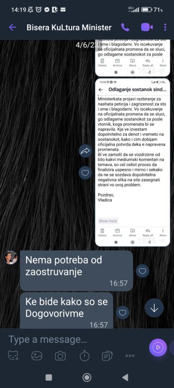 3. Крајно сме вознемирени и разочарани од односот на Министерката за култура г-ѓа