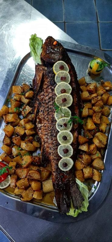 -Риба имаме 12 месеци и тоа, штотуку фатена во мрежа од локалните рибари. Рековме дека кралот е крапот, најголем специјалитет во нашето мени. А го подготвуваат двајца искусни готвачи кои порано работеа во Отешево и една помошничка салатерка. Понекогаш помага и мојата мајка Зорица, па затоа за нарачките не се чека воопшто. Веднаш се подготвуваат, веднаш ги добиваат…
