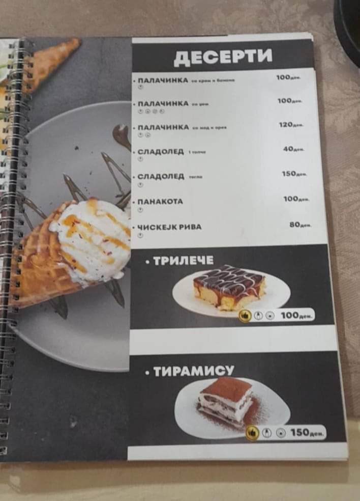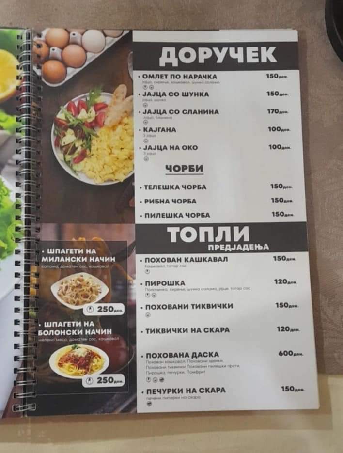 Но пред тоа, за да бидеме покомотни, го разгледуваме менито. Знам не ви се верува и го разлистувате уште два три пати. Вистина е тоа што гледате, тие се цените.