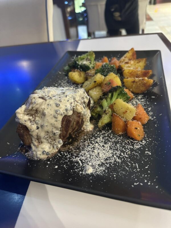 Сега, откако ја поставивме оваа златна трпеза со сто специјалитети и плус уште десет други кои љубезниот персонал ви ги нуди, ставаме златна роза на масата и ви го оставаме предизвикот да отидете, да погледнете, да јадете и пиете и да уживате.