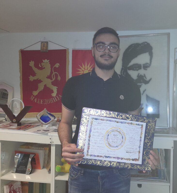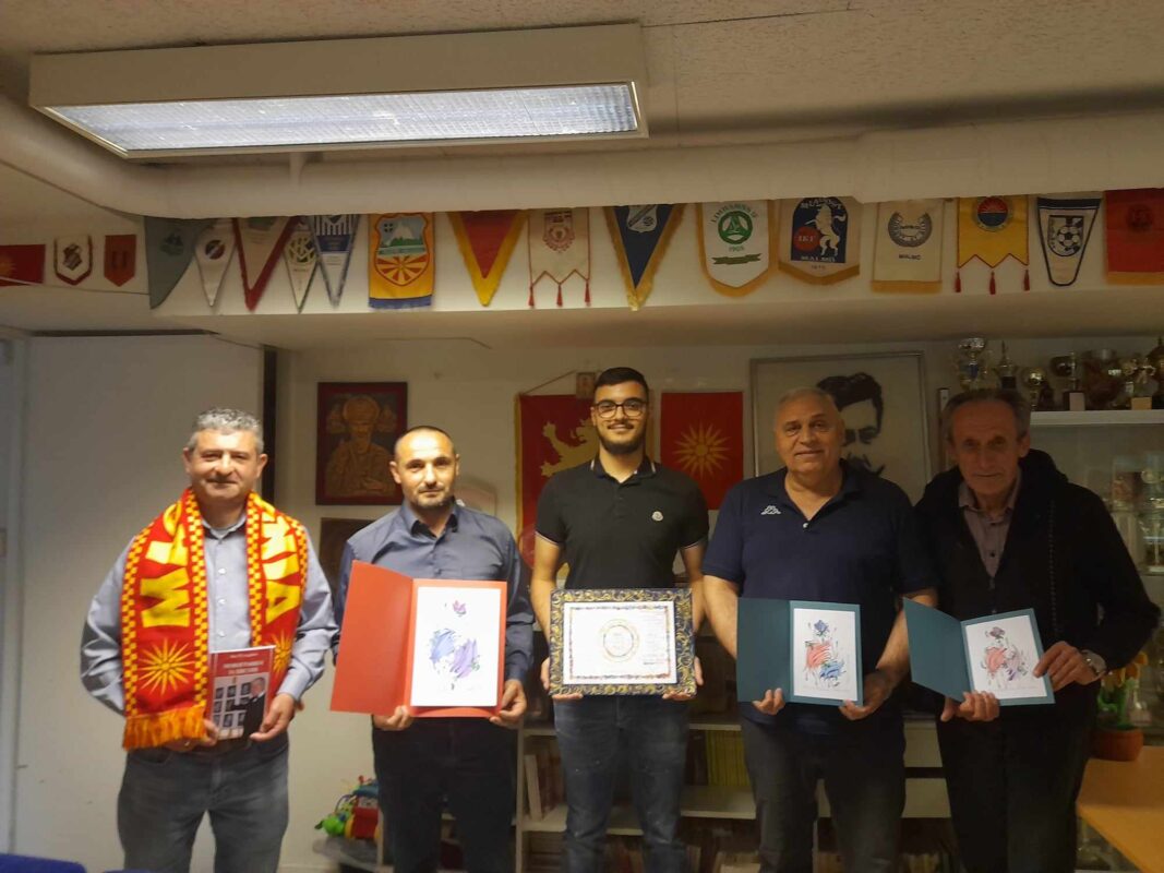 На свеченото врачување на признанијата присутни беа уште двајца членови на клубот, Љупчо Веловски и Димитрија Иванов, кои исто така добија мироносни цртежи од Цветин, а младиот Никола Георгиевски на крај ја потпиша Цветната мирносна порака која изминативе денови ја потпишуваа и новинарите на Евровизија 2024.