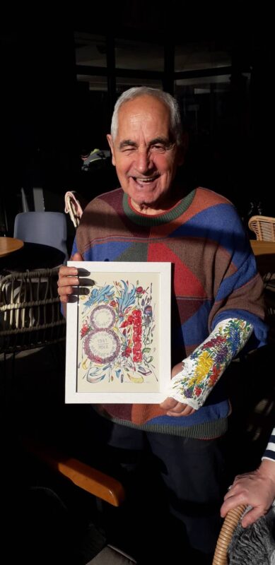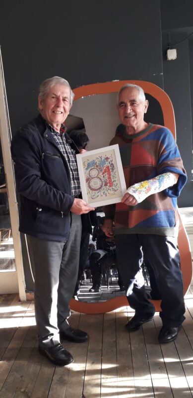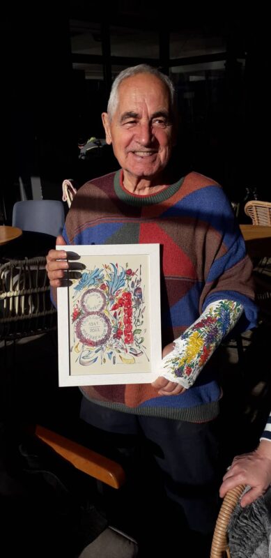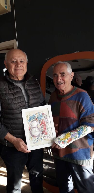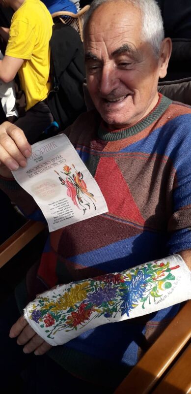 Во чест на тоа, на пладне во едно од кафулиње во ТЦ Бисер одигра шаховска партија со писателот и поет Мендо Димовски, додека уметникот и хуманист Живко Поповски Цветин му ја украсуваше со цвеќиња лонгетета на неговата повредена рака, а, по обичај овој уметник, ѝм подари цветни цртежи на дамите.