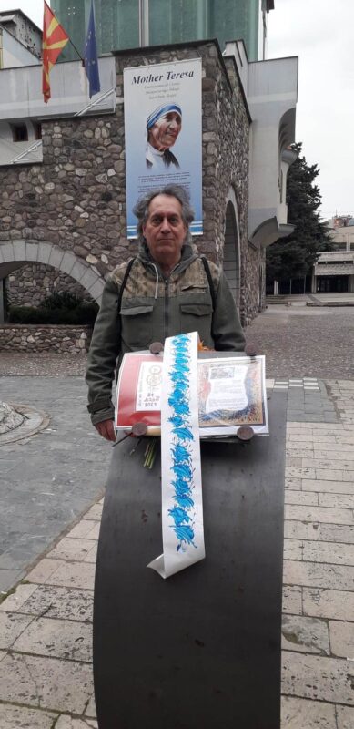 Исто така, писмо му беше врачено и на поетот од ДПМ Мирче Нешковски, кој меѓудругото ги изненади присутните со сеќавањата дека како стар скопјанец бил сосед на Мајка Тереза, која била и многу блиска пријателка со неговата мајка.