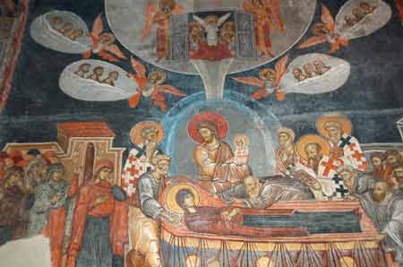 Успението на Пресвета Богородица е тема на многу уметнички дела низ вековите. Оваа фреска е од манастирот Пресвета Богородица во Берово.