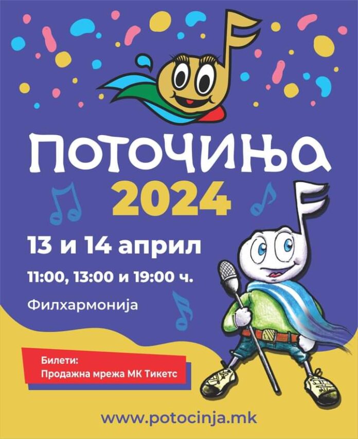 Билетите се во продажба преку продажната мрежа на МК Тикетс и онлајн на следниот линк – https://mktickets.mk/event/potocinja2024/ по промотивна цена од 350 денари до 31.03.2024.